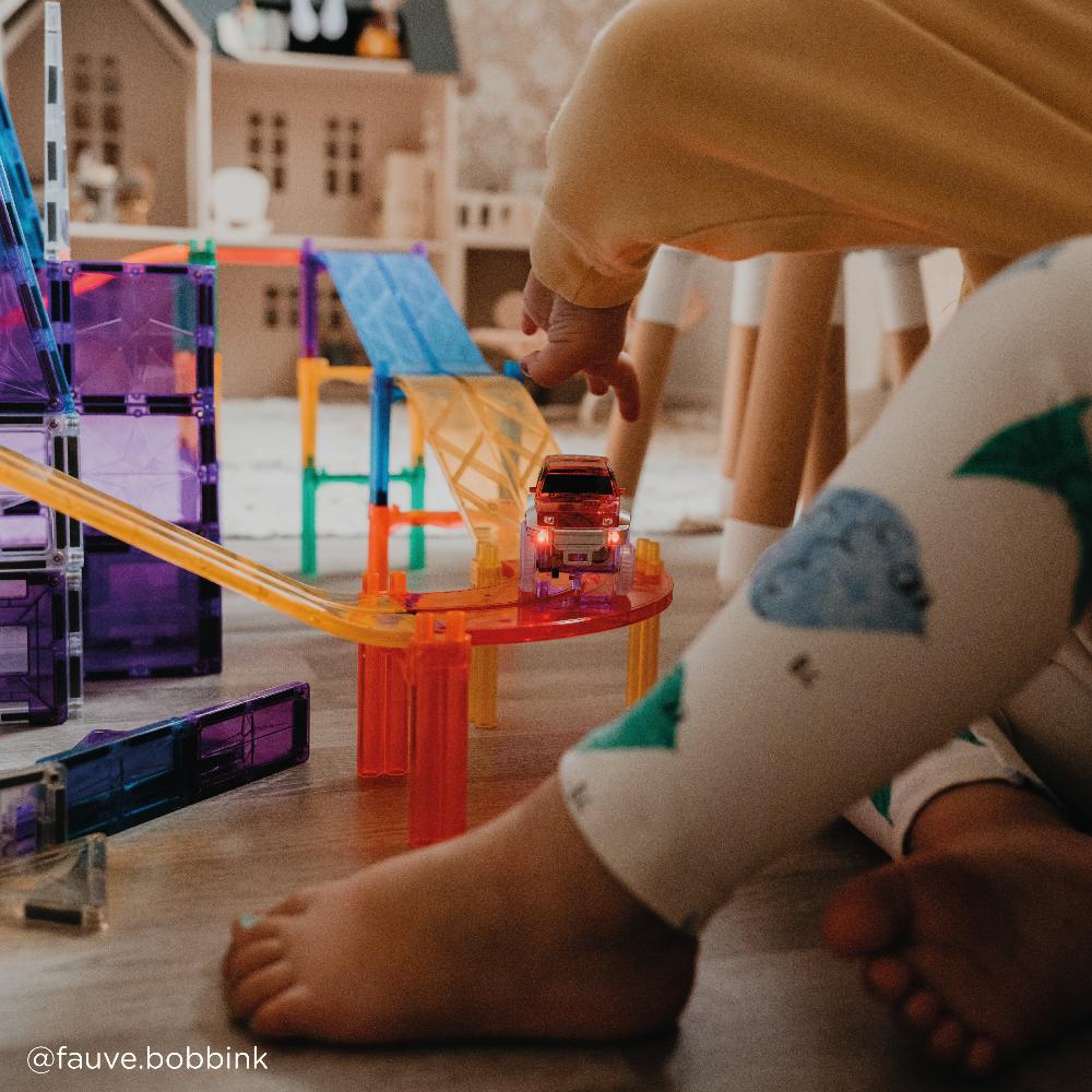 The CleverClixx Race Track Intense 65 Pieces Set is a magnetic construction toy designed to inspire creativity and hands-on learning. This set includes 65 magnetic pieces that allow children to build exciting race tracks and imaginative structures while exploring basic engineering concepts. The colourful magnetic tiles easily connect together, encouraging problem-solving, spatial awareness, and fine motor skill development. Made from durable, child-safe materials, the set is suitable for repeated play and endless building possibilities. Ideal for children who enjoy creative building toys and interactive play experiences.